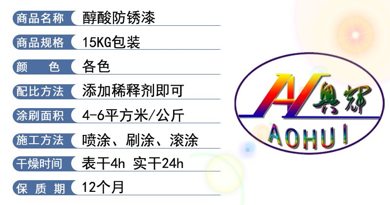 组成:同醇酸树脂、颜料、体质颜料、催干剂以及溶剂等加工而成。